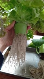 ただリーフレタスの根は横に大きく育ち、長さは以外に短い(太く短い)為、深すぎる容器の場合には、途中で根が液肥に浸かっていなかった、なんてこともあります(私の初期の失敗)ので、液肥が十分浸かる物を準備しておきましょう。